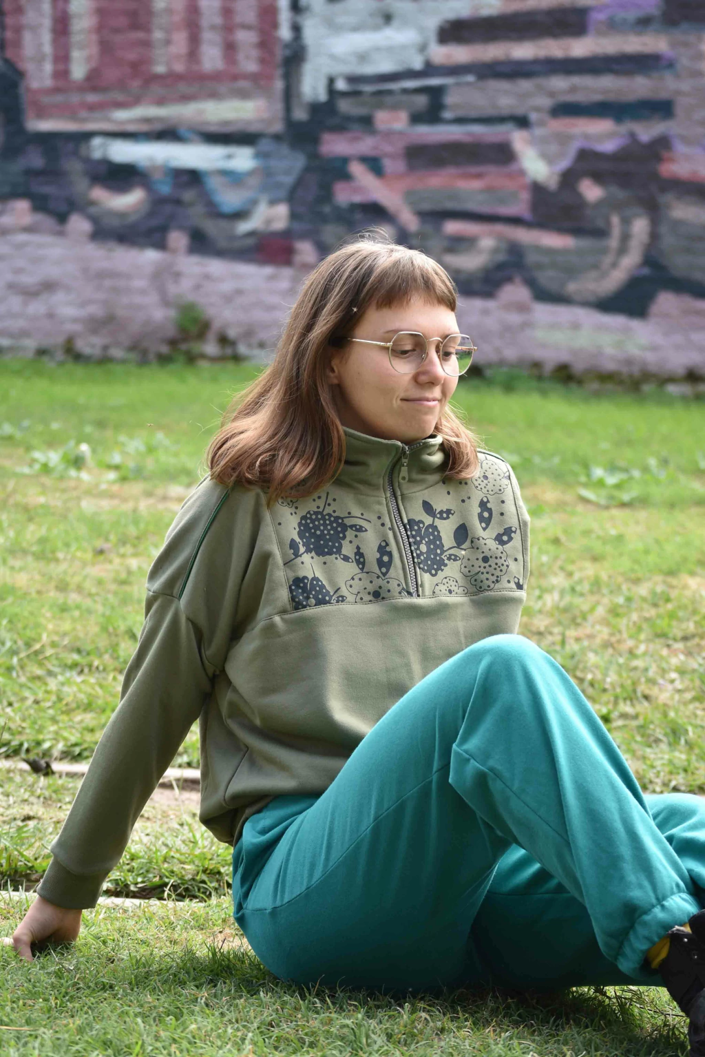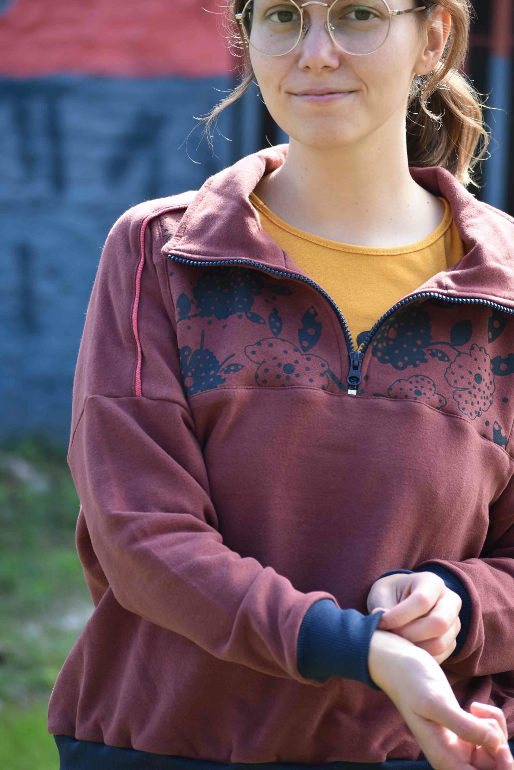 Prenda de rústico de algodón peinado. Cuello media polera con cierre diente de perro.
