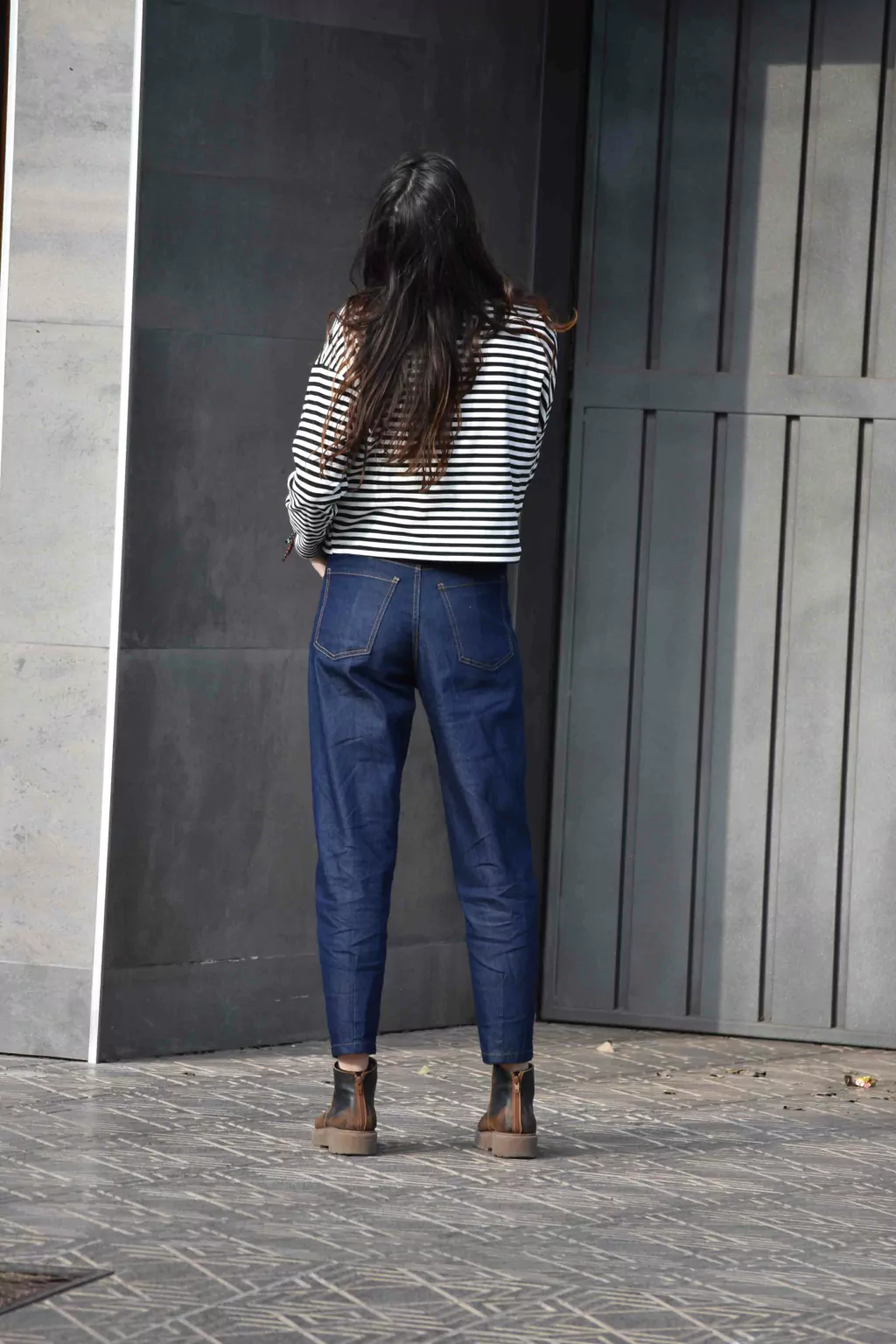 Prenda de jeans elastizado slouchy. Con bolsillos delantero y trasero corte jeans.